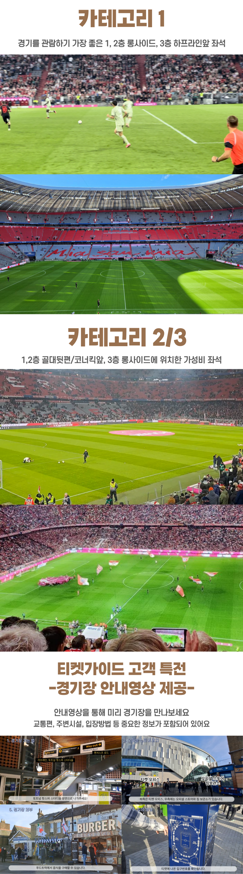 - 독일 분데스리가, UEFA 챔피언스리그(챔스), DFB포칼컵(리그컵) 등 모든 홈경기 예매가 가능해요