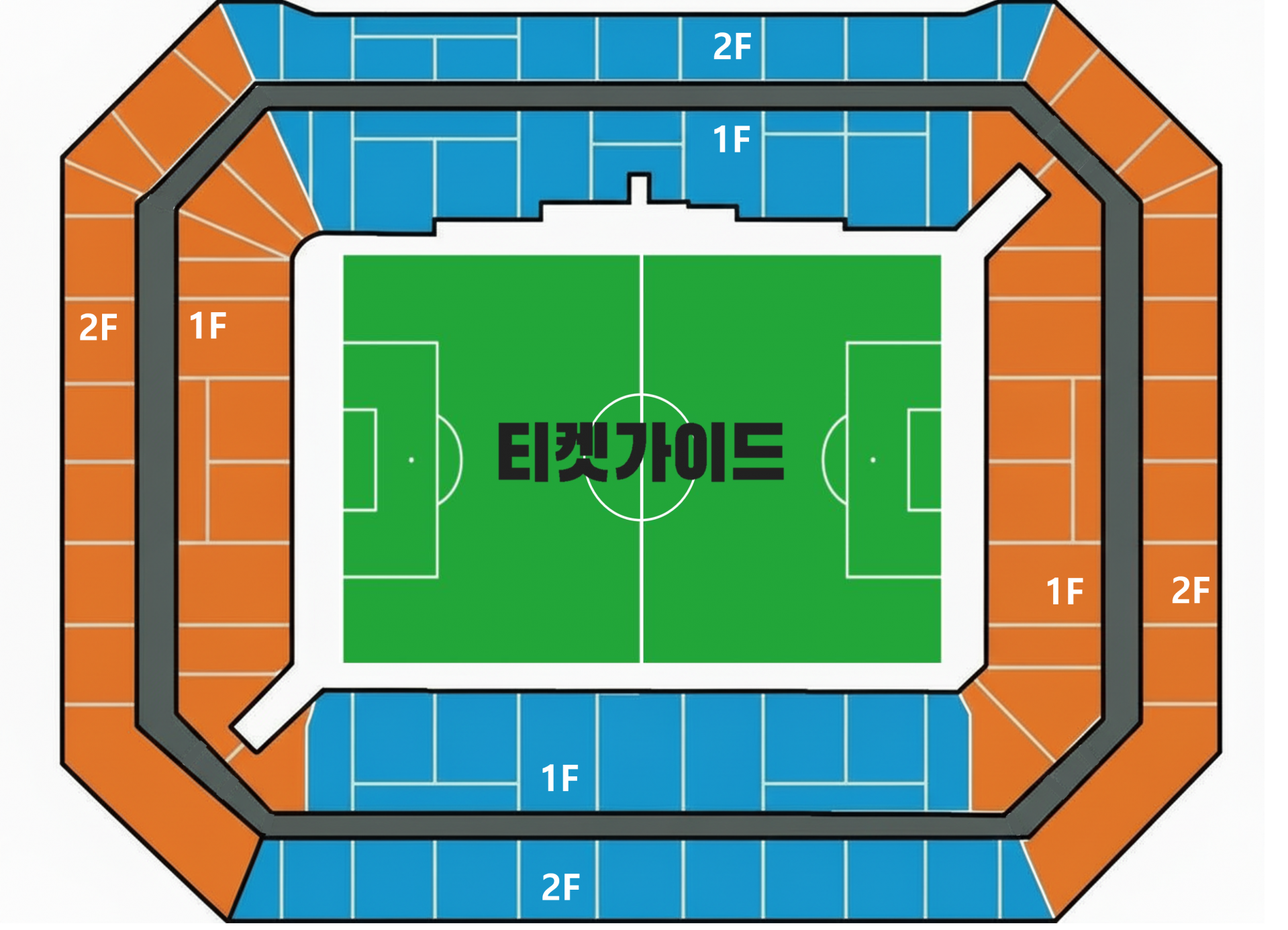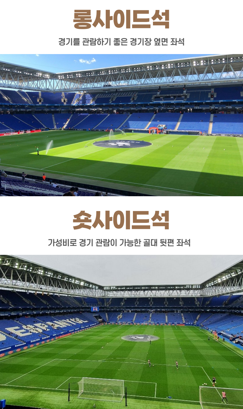 ㆍ롱사이드석(하늘색 블록) : 경기를 관람하기 좋은 경기장 옆면 좌석